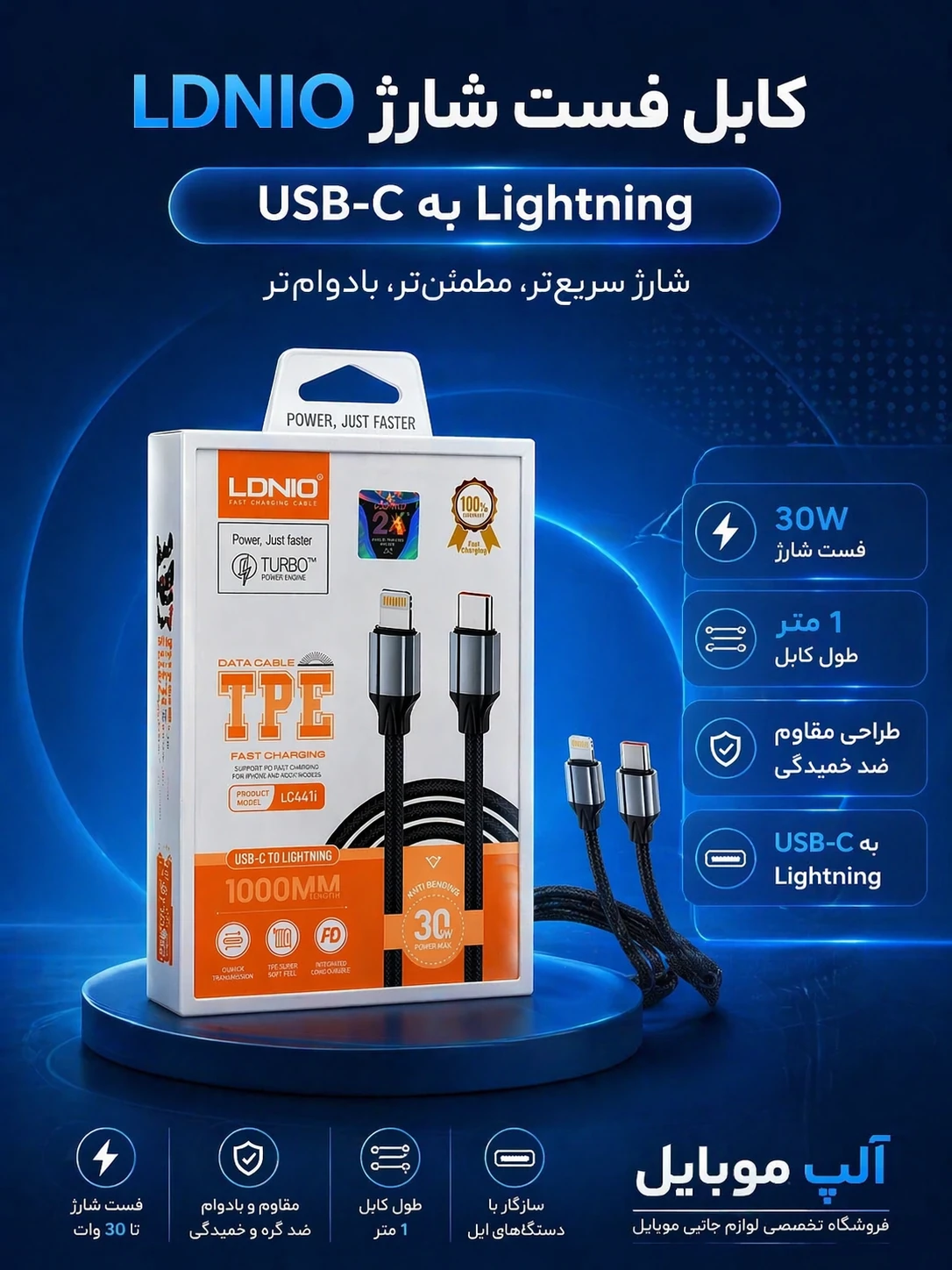 کابل شارژر آیفون الدینو LC441i